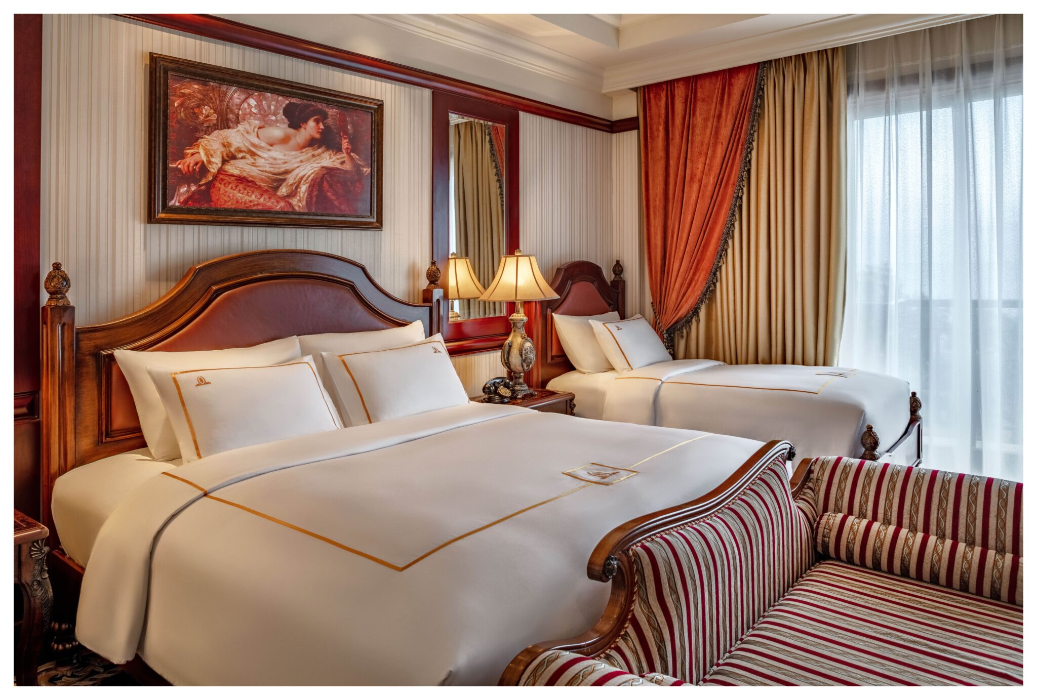Pamper yourself in this 40 sqm royal retreat or step out on the marble balcony and appreciate the fresh lofty view. Step in any IMPERIAL’s room is like travelling to Victorian era. Each feature like handcrafted carvings, gorgeous carpets, high ceilings, marble bathrooms and plenty of space are thoughtfully disposed to honor you with the royal touches. If you are a business traveler, take advantage of the in-room working station during the trip.